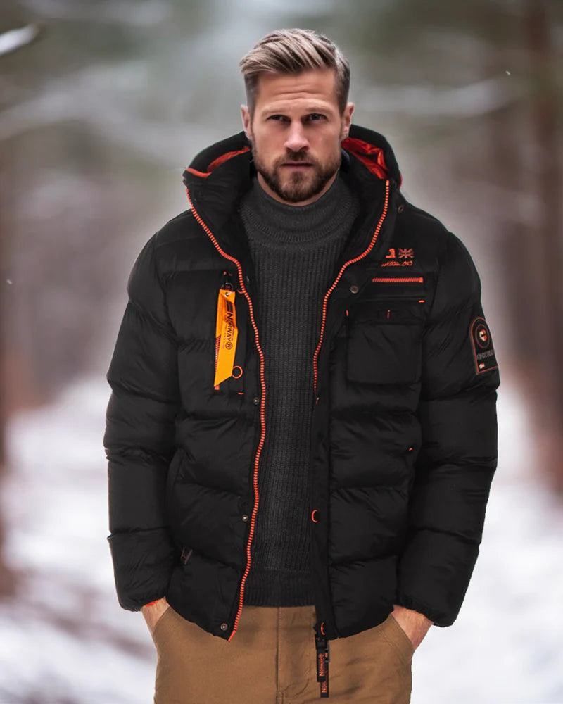 Miesten punainen kauluspaita mustilla napeilla. Mustaa väritystä myös kauluksen ja hihojen sisäpinnoissa. Varma valinta joulukauteen 👌