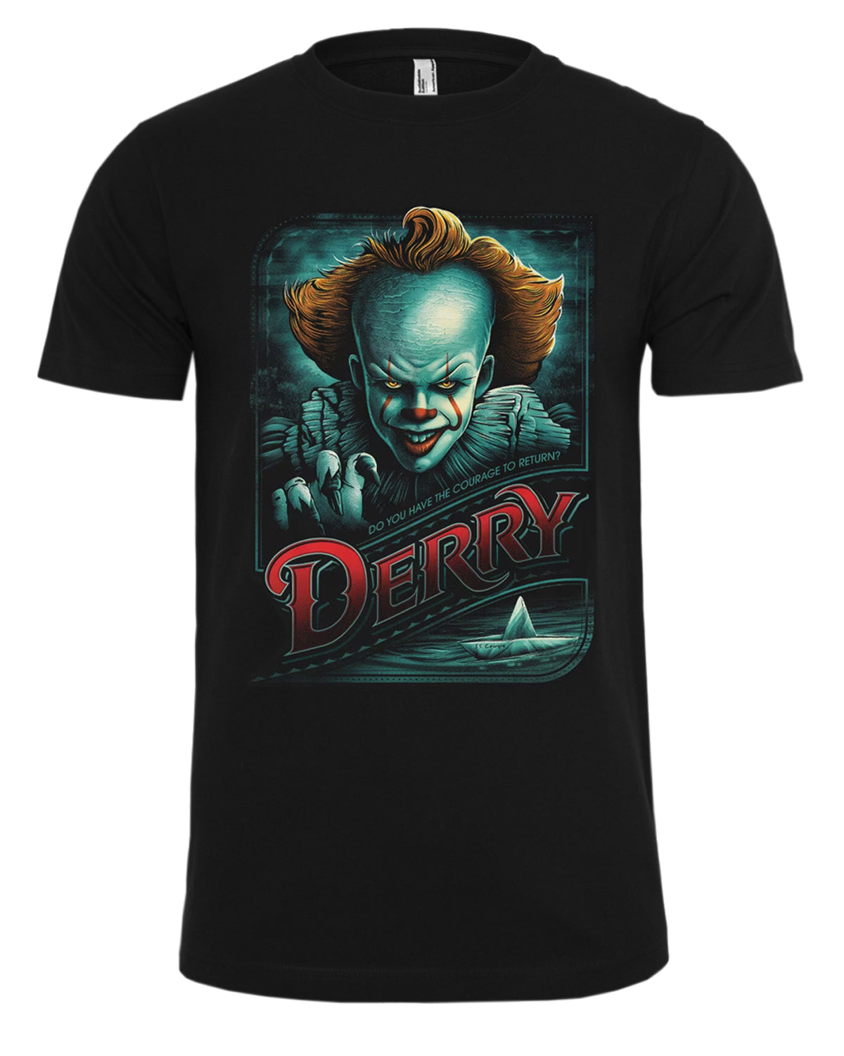 Men's black IT- Pennywise in Derry t-shirt. Print on the front. Normal sizing.