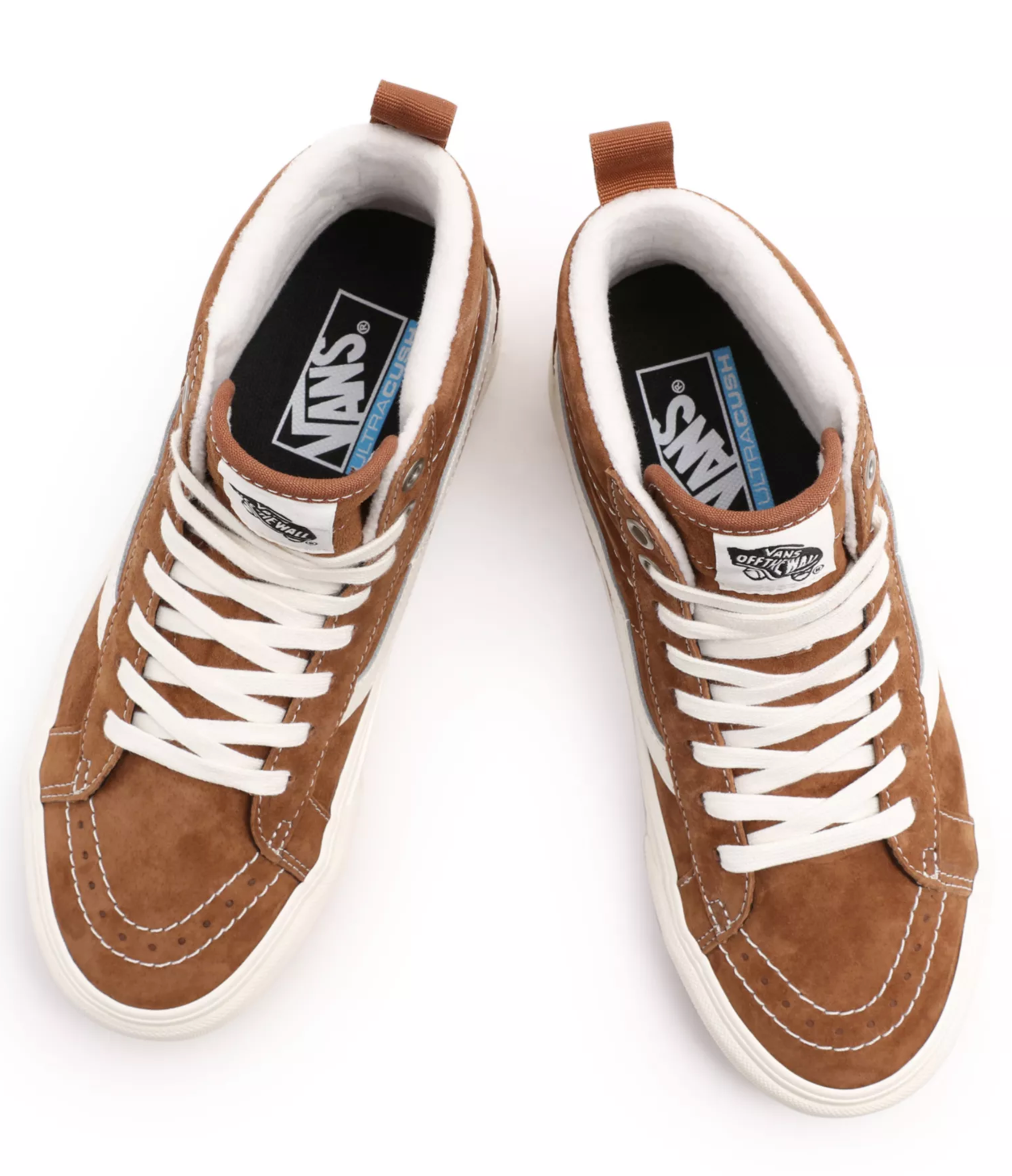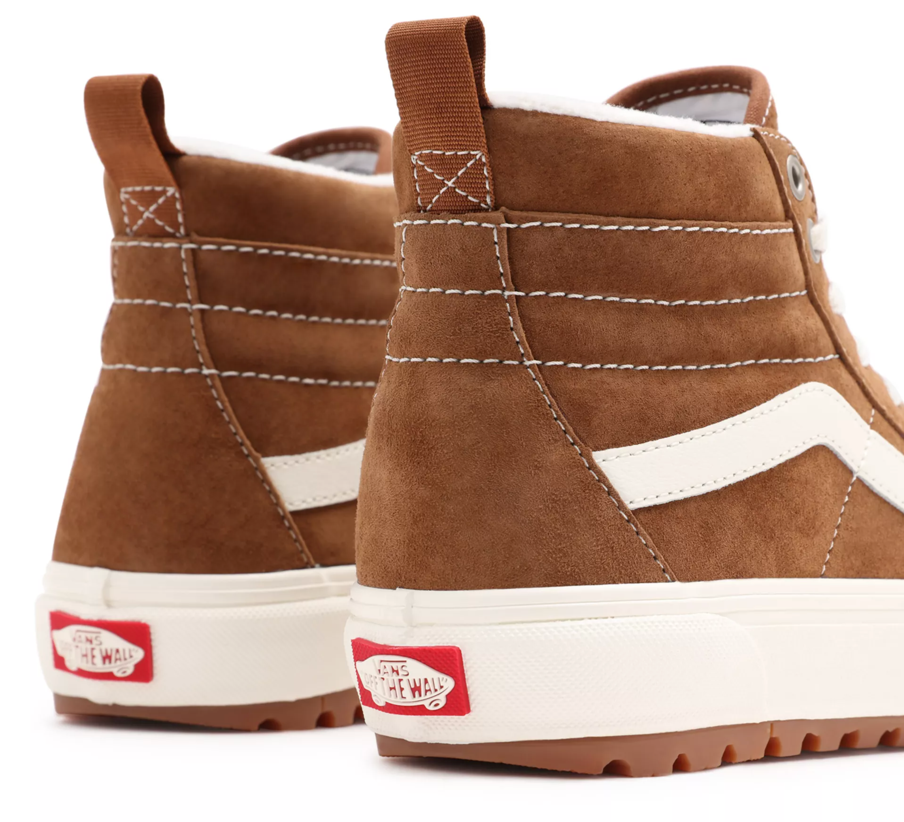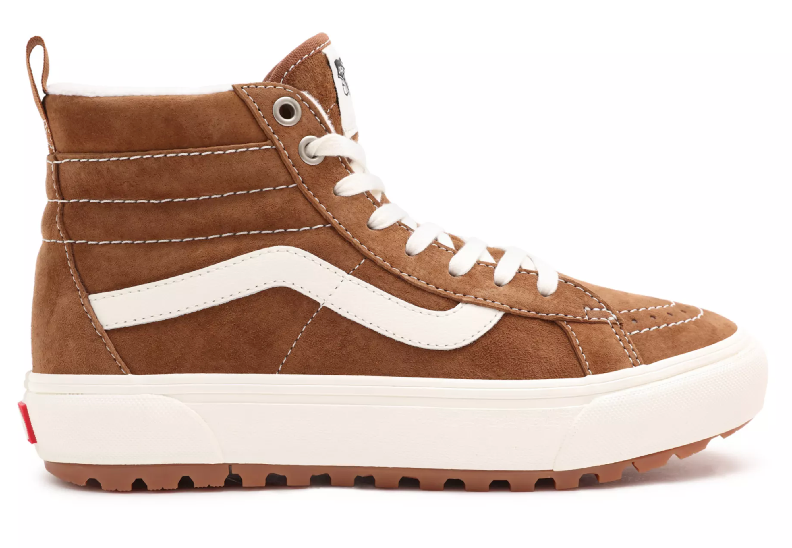 Brown high-top sneakers from the brand Vans. sneakers are water-resistant and have is Warm inner lining.