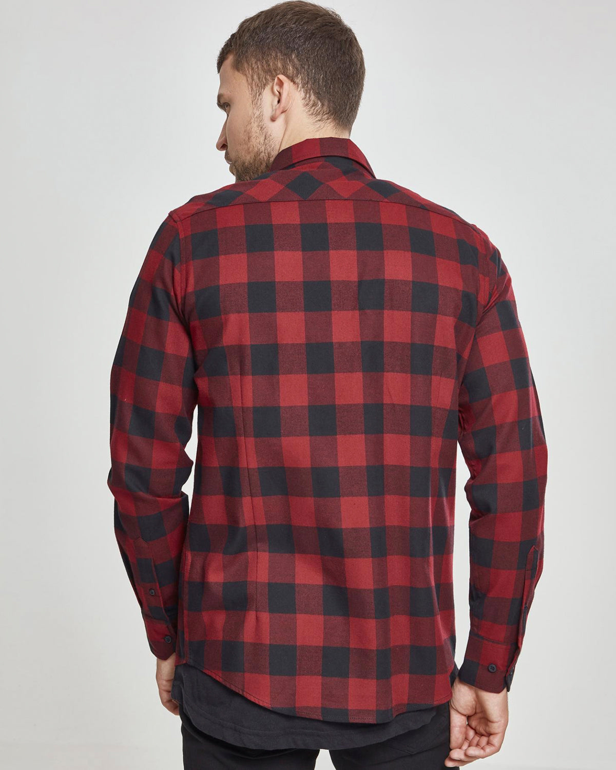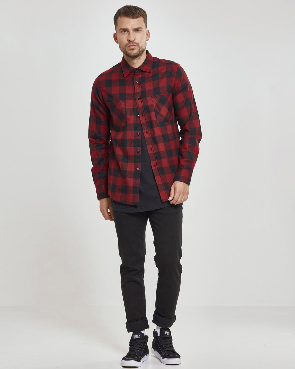 Miesten mustapunainen ruutupaita brändiltä Urban Classics. Edessä kaksi taskua. Normaalia mitoitusta.