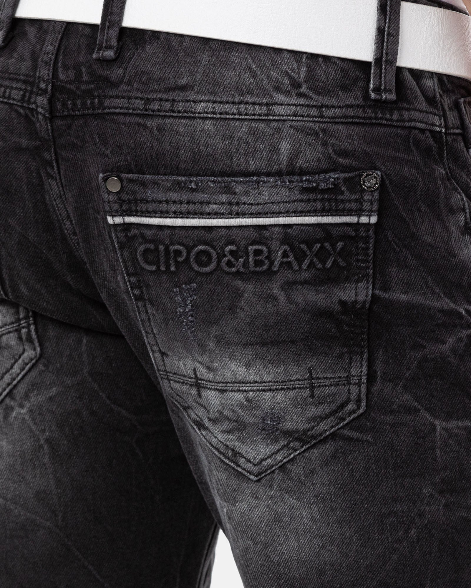 Mustat farkkushortsit, joissa yhdistyy mukava istuvuus ja Cipo & Baxx -tyylille tuttu rohkea ilme. Tyylikkään tumman denimin pinta ja huolitellut yksityiskohdat tuovat shortseihin modernia asennetta. Normaalia mitoitusta.