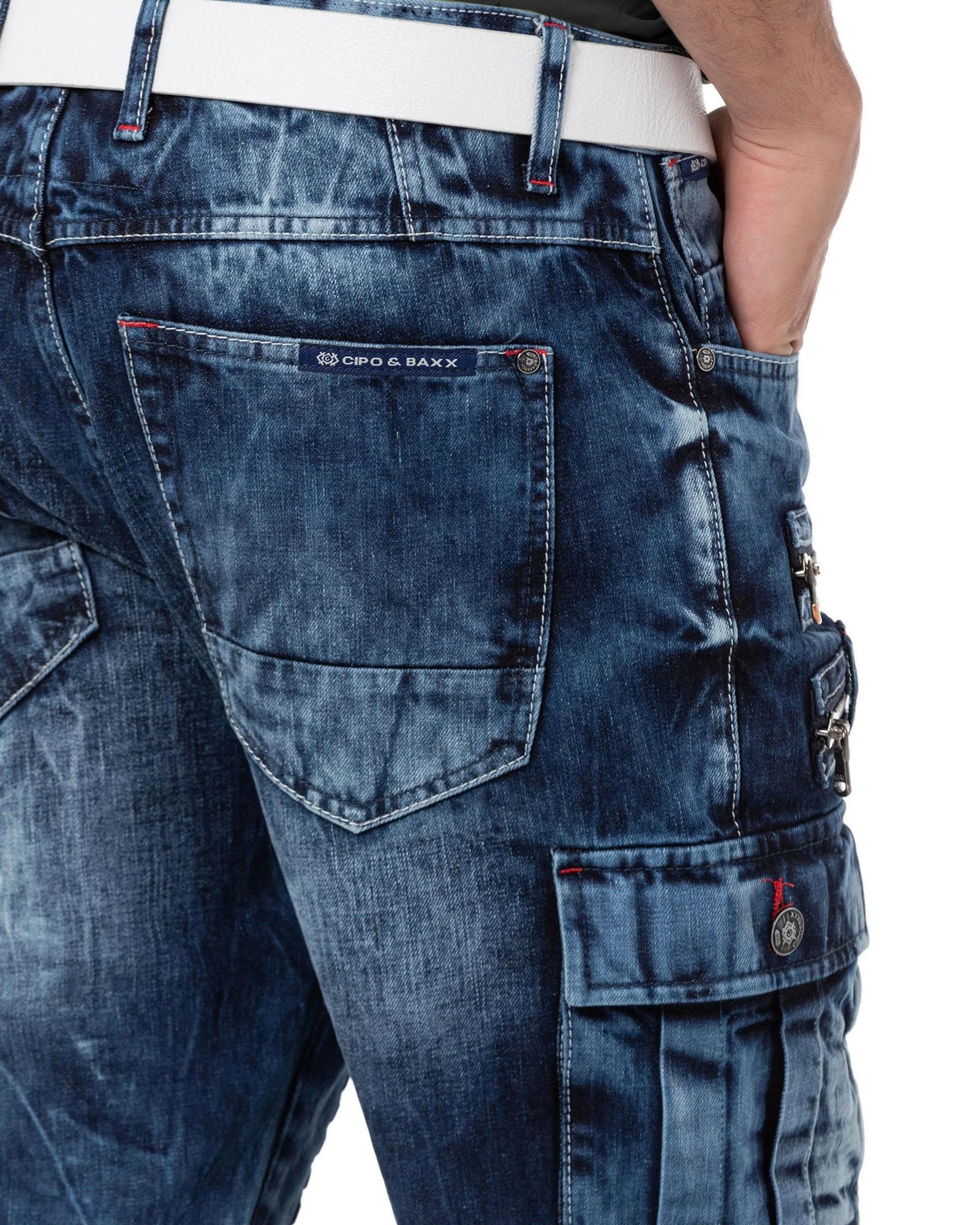 Siniset farkkushortsit brändiltä Cipo & Baxx. Shortseissa on seitsemän taskua ja vetoketjukiinnitys. Normaalia mitoitusta.