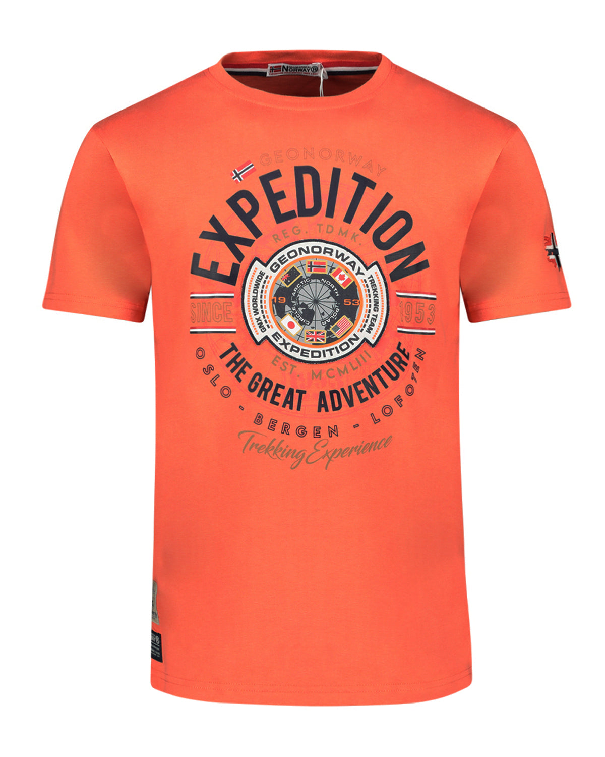 Miesten oranssi printtipaita merkiltä Geographical Norway. Normaalia mitoitusta.