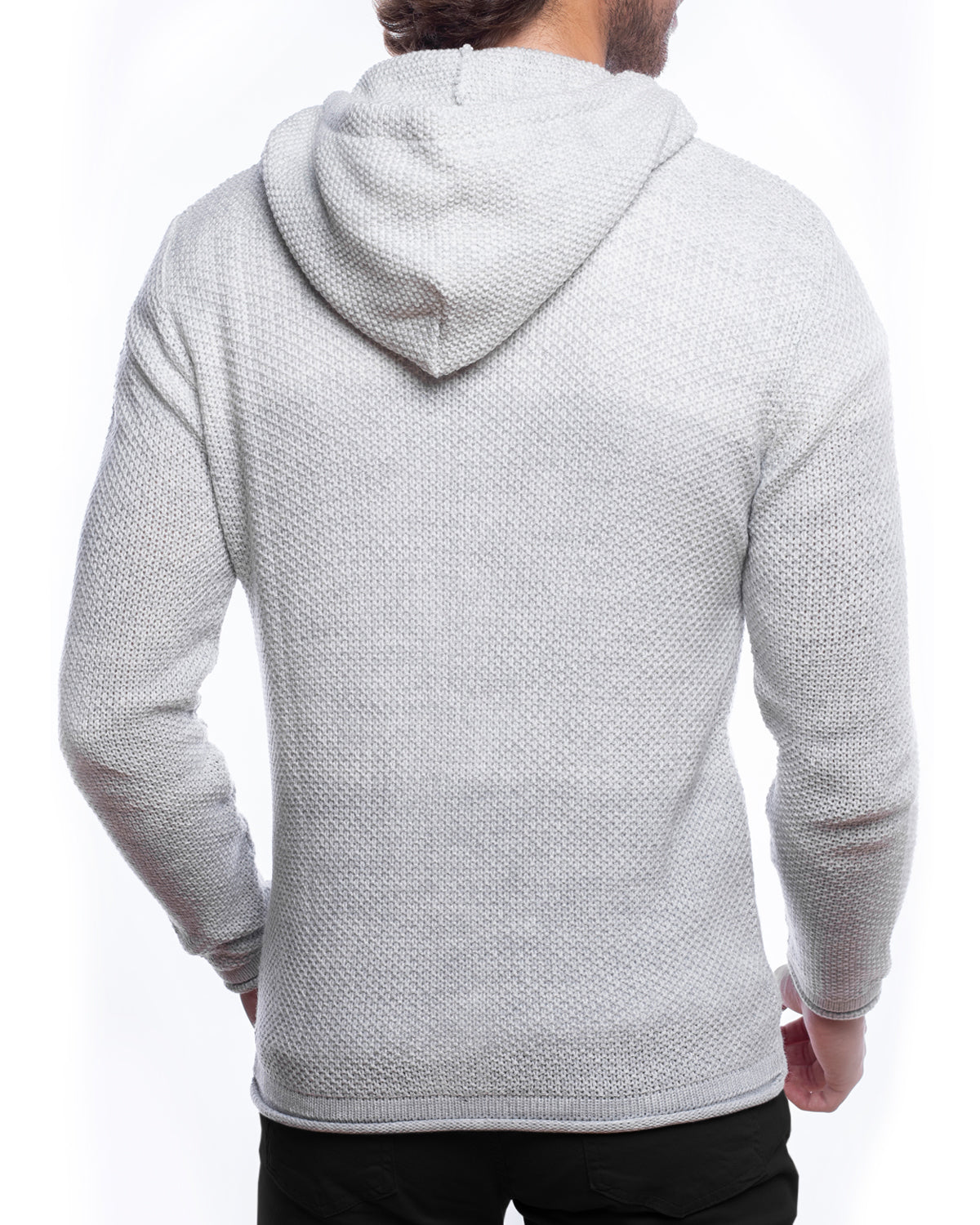Miesten harmaa neulehuppari. Neulehuppari on neulottu monilla eri väreillä ja yksityiskohtana Carisma- brändin logo rinnassa. Neuleessa on vetoketjukiinnitys ja hupussa kiristysnyörit. Edessä kaksi taskua. Normaalia mitoitusta.
