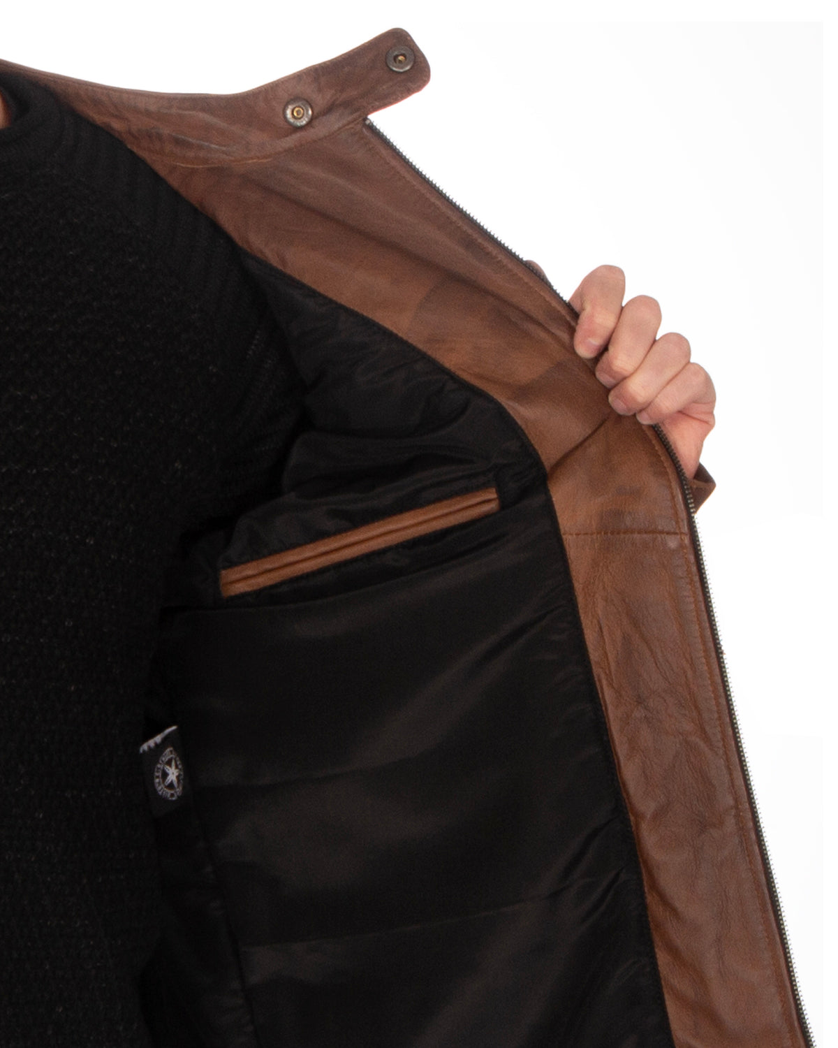 Tourist Trophy -nahkatakki yhdistää laadun ja tyylin täydellisesti! Aito ruskea lampaannahka tuo takkiin klassisen ja ajattoman ilmeen, joka paranee vain käytössä. Tämä Disturb Clothingin takki on huippulaadukas valinta, joka kestää vuodesta toiseen ja tuo asuun rouheaa ilmettä. Normaalia mitoitusta.